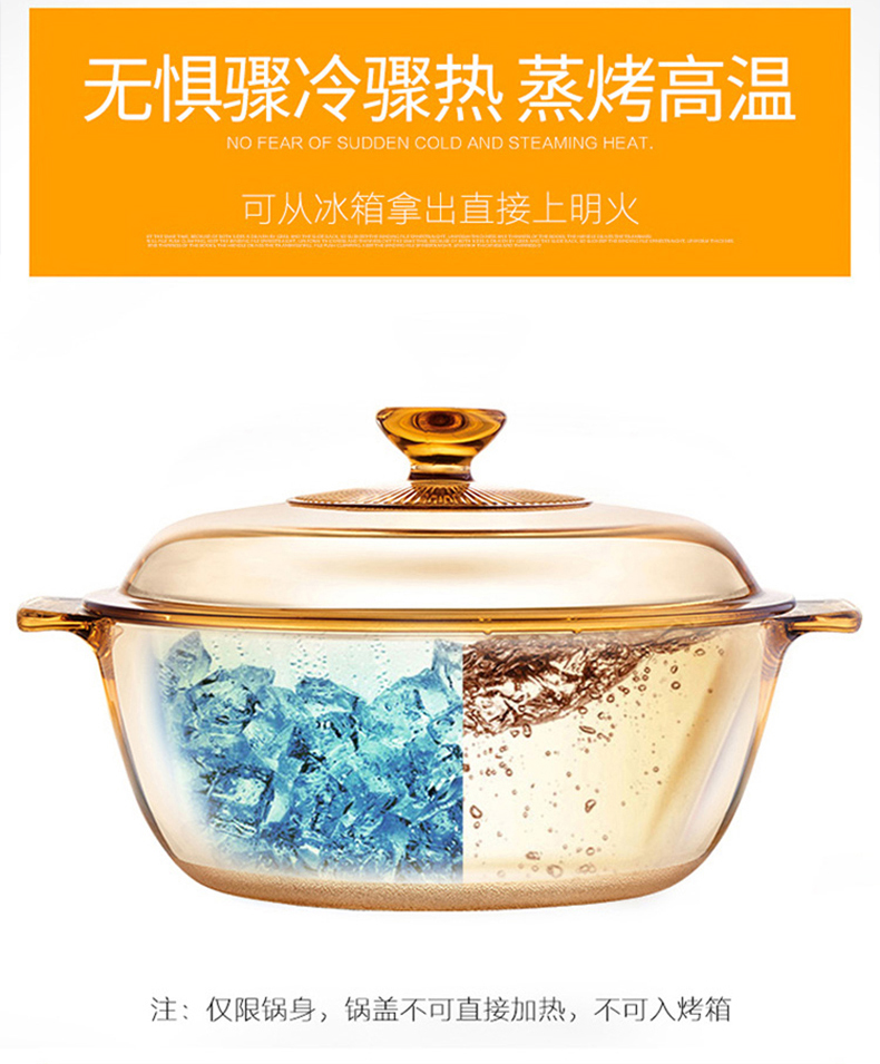 New Corning American household 4L soup pot cooking pot stew pot high temperature transparent high-definition pot glass pot