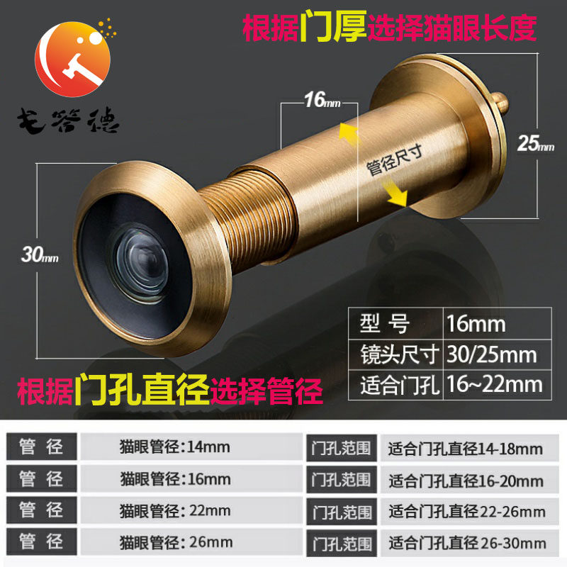 Household Wangli anti-theft door cat's eye door mirror HD all copper cat's eye old-fashioned anti-prying door universal HD door eye