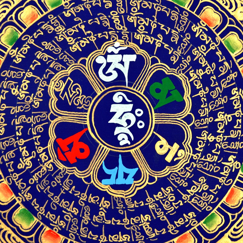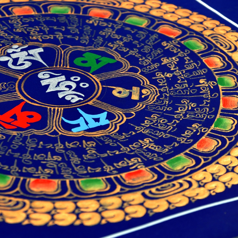 Good gift to send picture frame] Pure hand-painted thangka, painted gold six-character mantra, Nepalese hand-painted thangka TP69