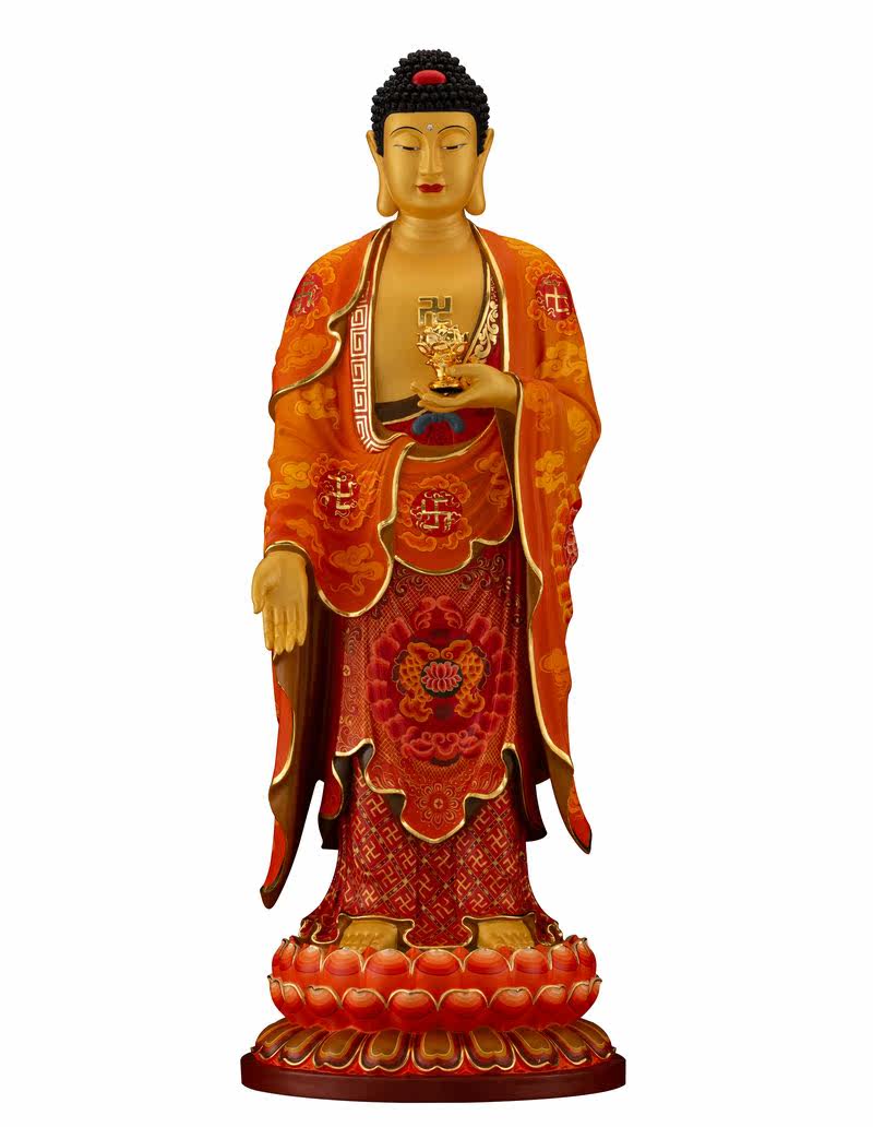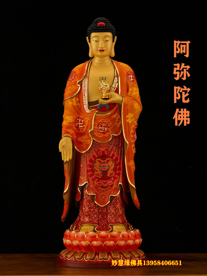 Standing West Three Saints 70cm Pure copper Buddha statue manufacturer Tang Caiguanyin large trend to Bodhisattva Amitabu Buddha Worship Mercy
