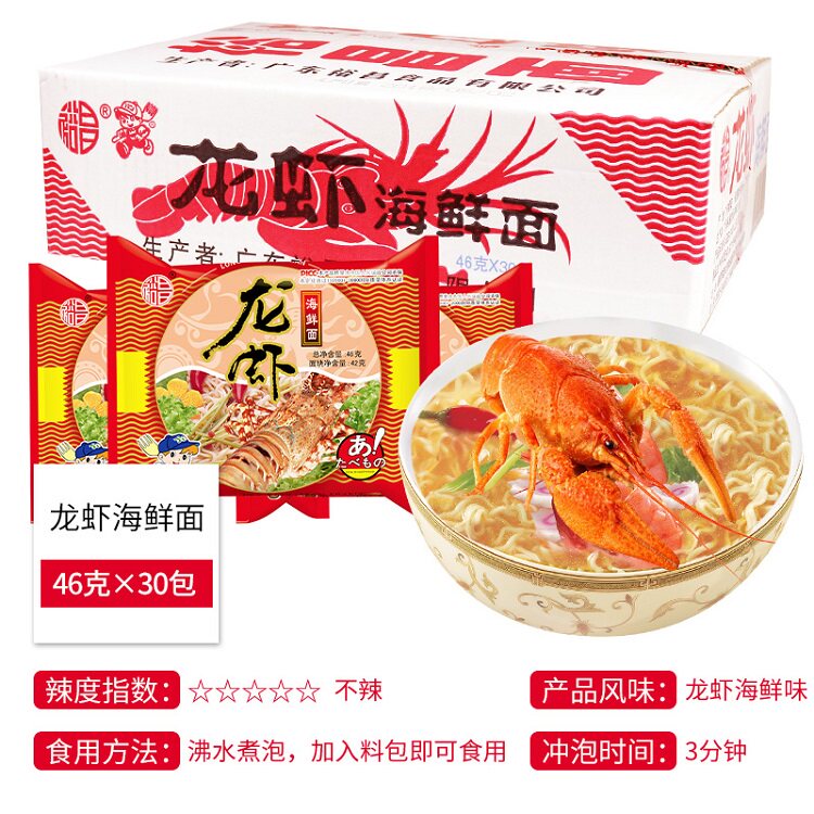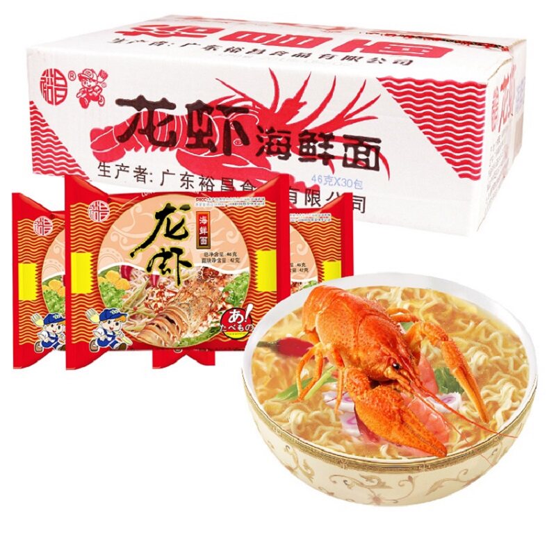 Cantonese Yuchang Lobster Seafood Noodle 27 Package Whole Box Clothing Net Red Dry Eating Bubble Noodles simply noodles Instant Snack of Instant Noodles