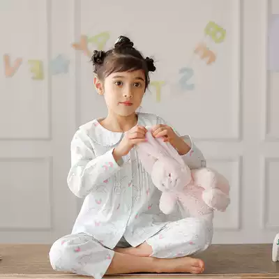 Children's pajamas long sleeve spring and autumn cotton gauze cute super cute rabbit little girl home clothes summer thin suit
