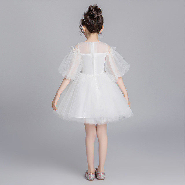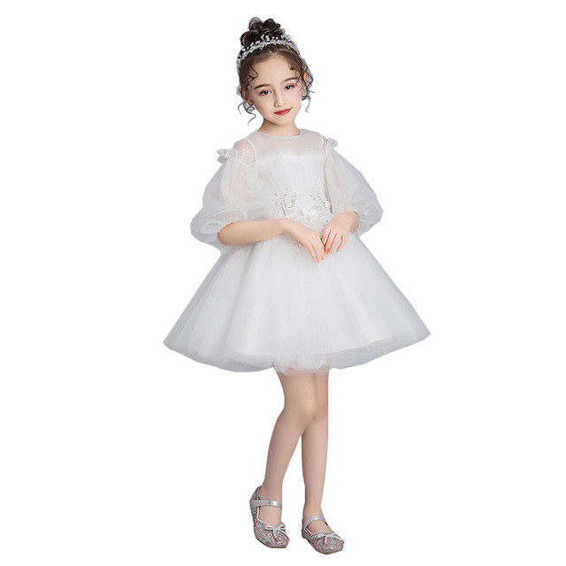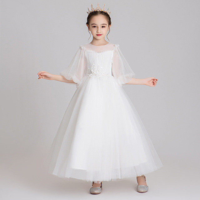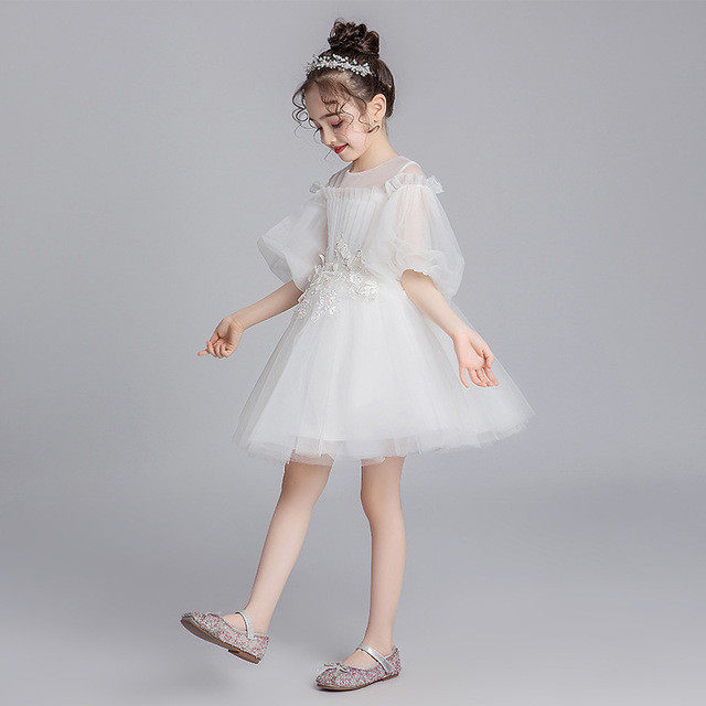 Girls dress Yellow Princess Wedding Flower Bubble Sleeve Cuff Show host dragged the long 2023 model