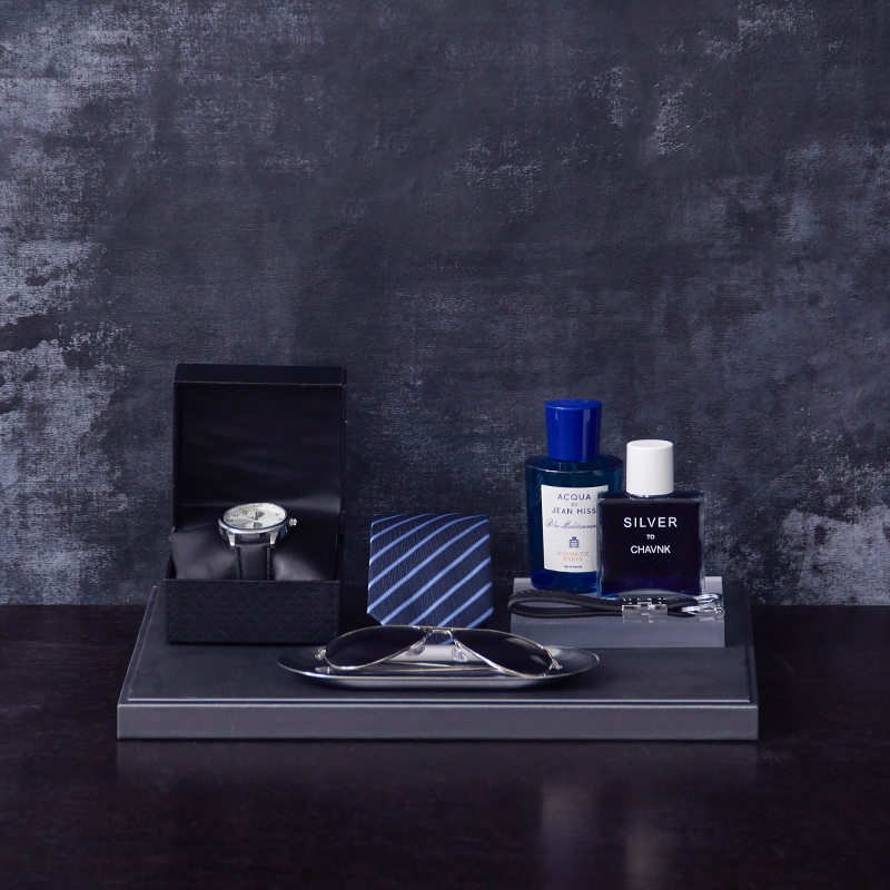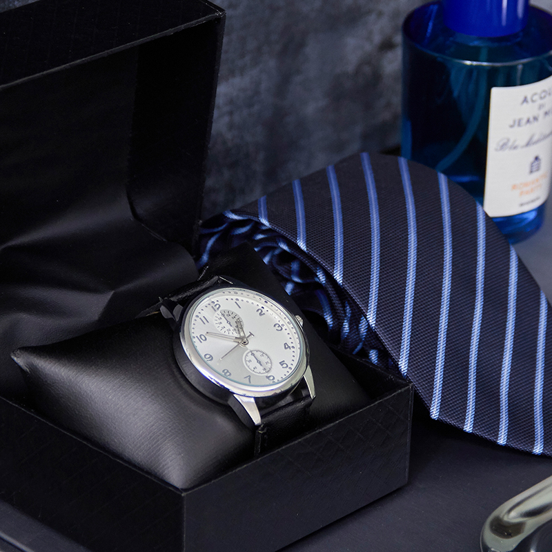Cloakroom set 0037PU watch box pillow core T men's casual quartz watch Korean fashion business dress tie black H logo leather keychain silver frame pilot sunglasses silver stainless steel