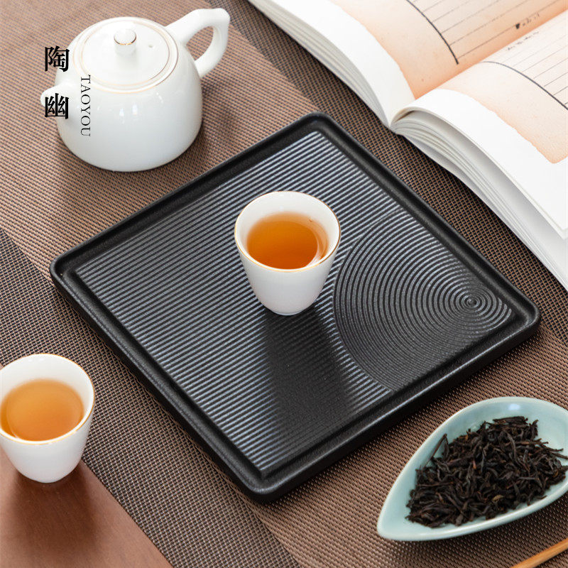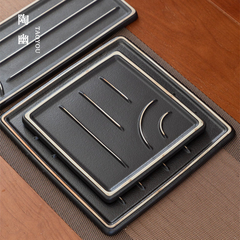 Tao You Dry Bubble Small Tea Tray Japanese Black Ceramic Household Kung Fu Tea Set Tea Sea Simple Tea Table Mini Tray Pot Bearing
