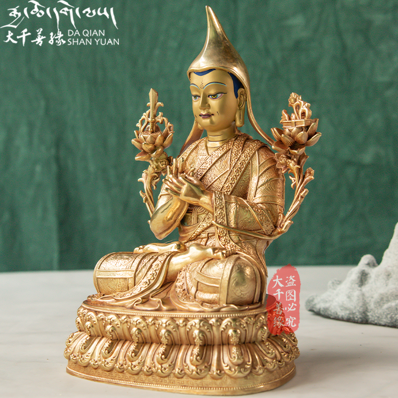 Great Thousand Good The Tibetan Process 5-inch 17cm Tibetan Zen Zong Zong Kaba Master Buddha Mi Bronze Statue of the Golden Bronze Statue of the Pendulum