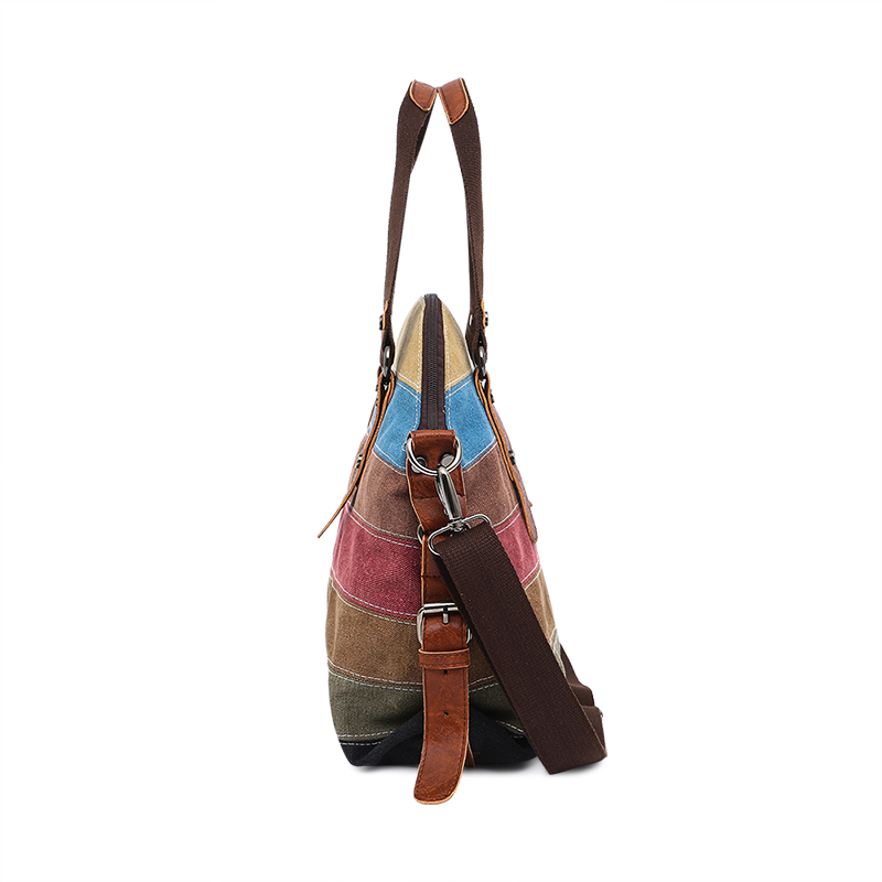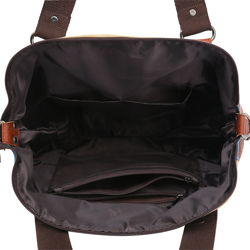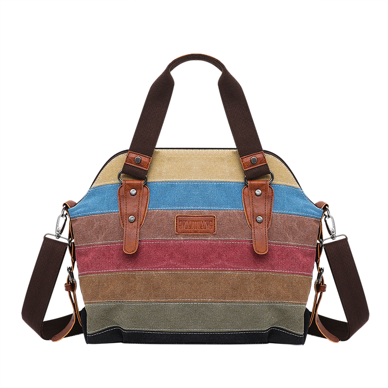 Splicing canvas women's bag ins medium bag casual simple literary hand-held one-shoulder messenger bag large-capacity multi-compartment
