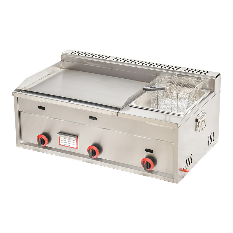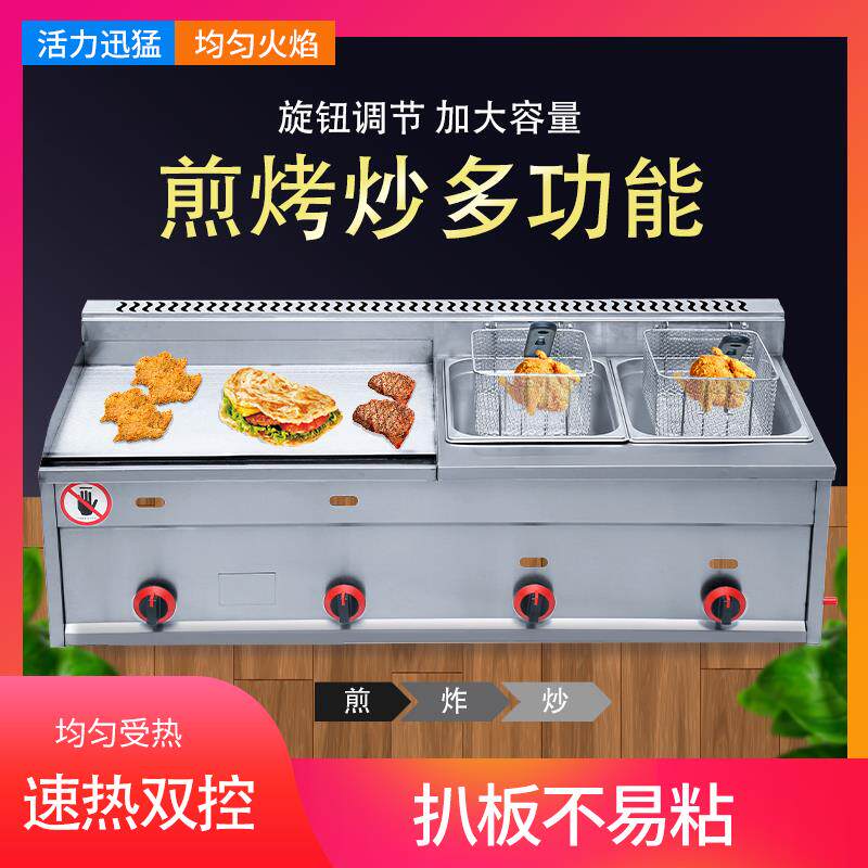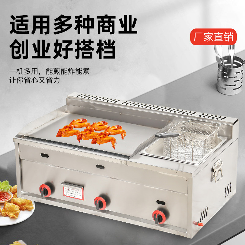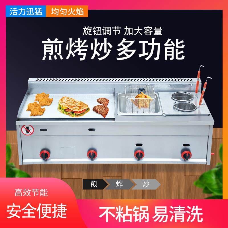 Commercial gas grill fryer all-in-one machine stall teppanyaki grilled squid equipment gas hand grab cake baking cold noodle machine