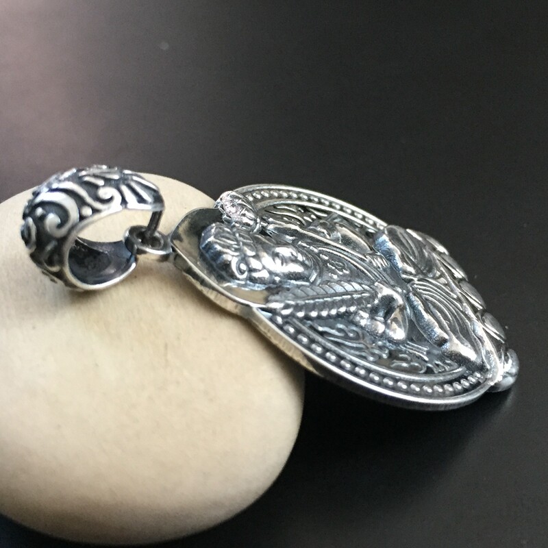 (Binding Price) 990 Foot Silver Void Tibetan Bodhisattva Heart Sutra Zen Pendant Sterling Silver Carving DA31