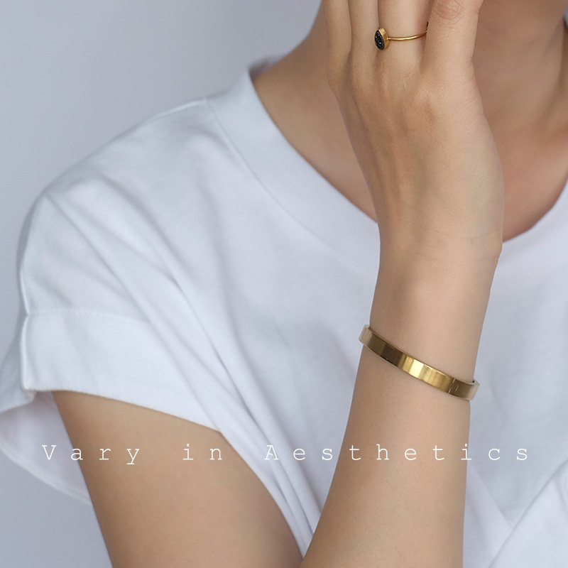VIA simple sexual cold style fashion bracelet European and American titanium steel plated 18K gold advanced sense wide bracelet female