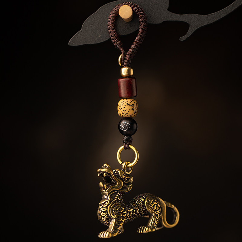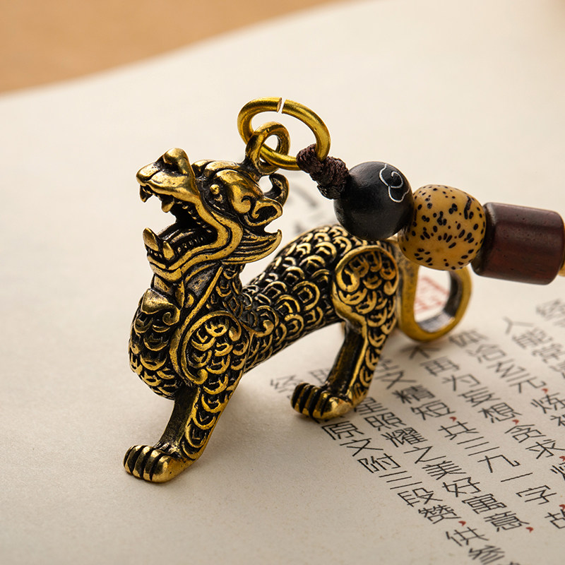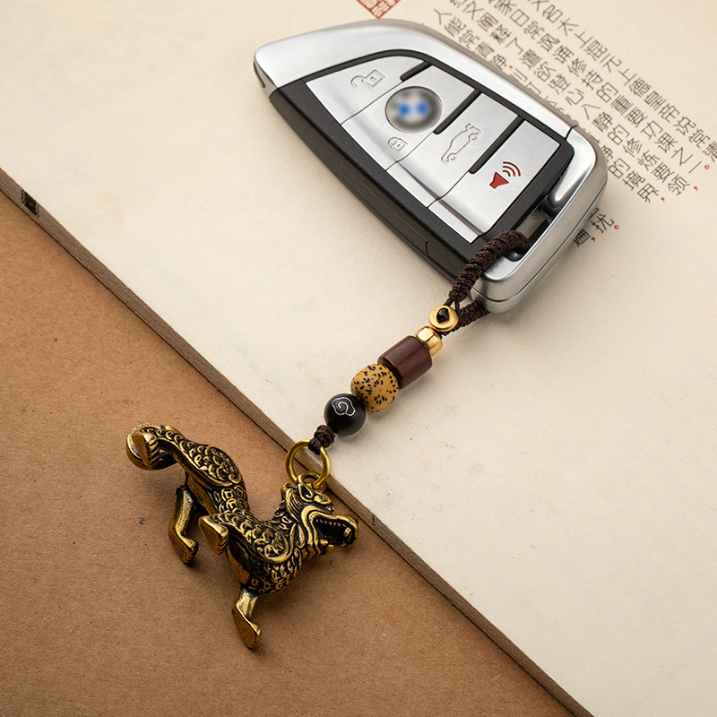 Pure brass unicorn animal car keychain small pendant men and women tide desktop small ornaments jewelry retro