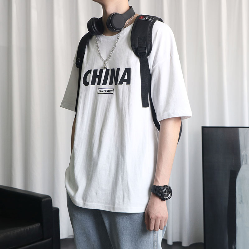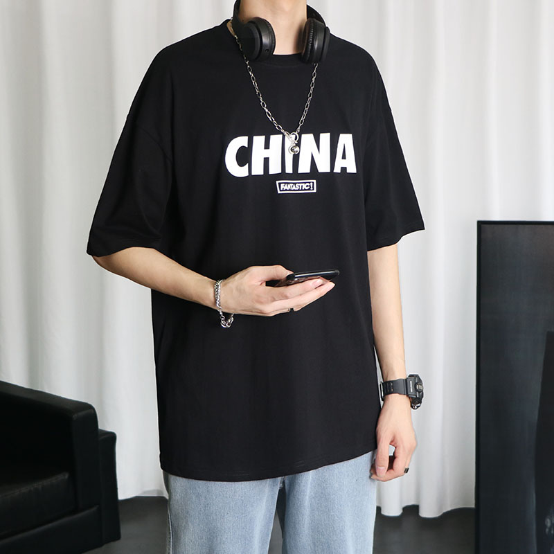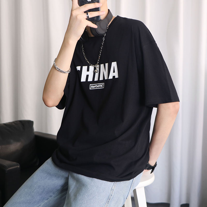 Short Sleeve Male Tide Card Trendy Easy Port Wind T-shirt 100 hitch Han version printed half sleeve ins2022 new summer T-shirt