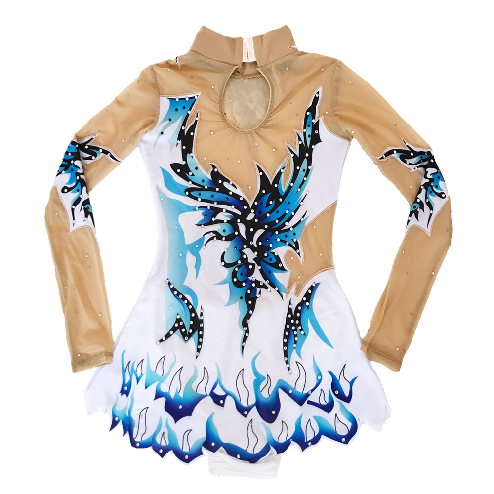 LIUHUO Artistic Gymnastics Suit Children Gymnastics Performance Uniform Figure Skating Bodysuit White Progressively BD508