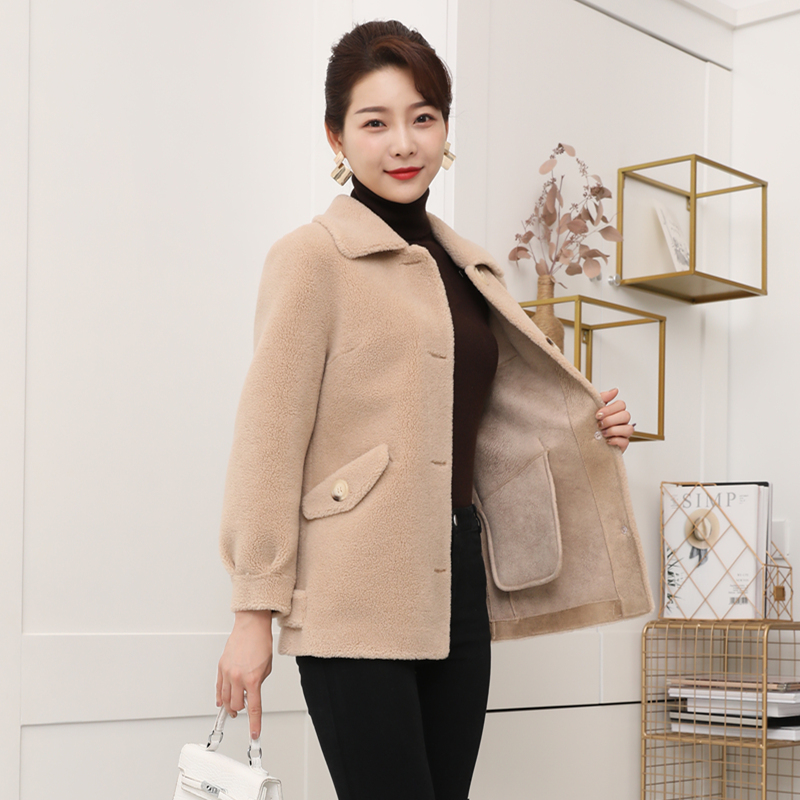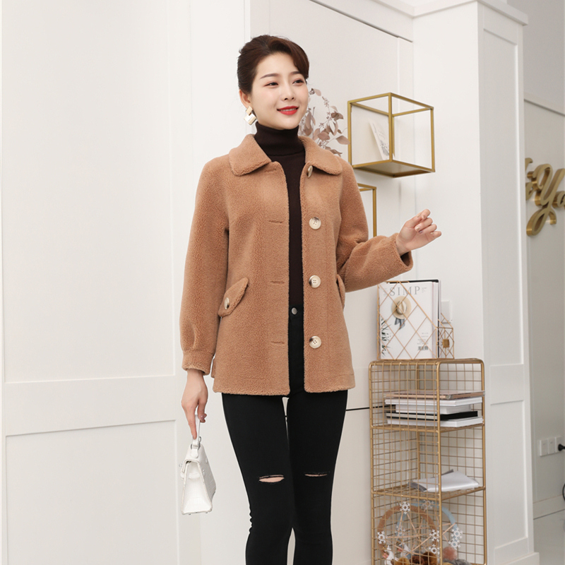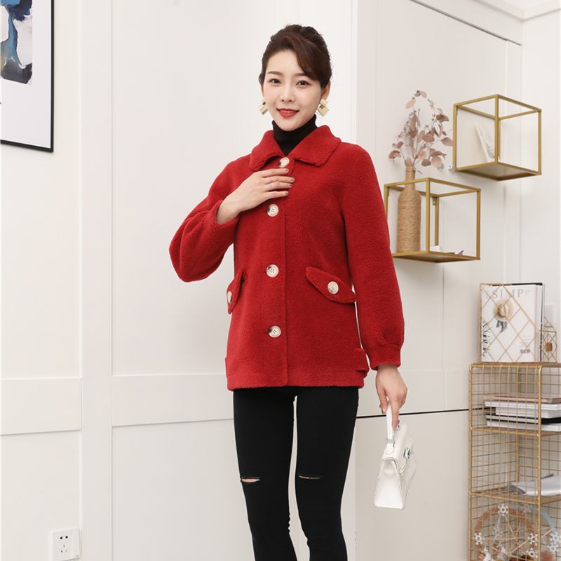 Autumn Winter New Grain Wool Female Leather Grass Jacket Mom Clothing Fur Integrated Lamb Wool Sheared Velvet Big Coat Short