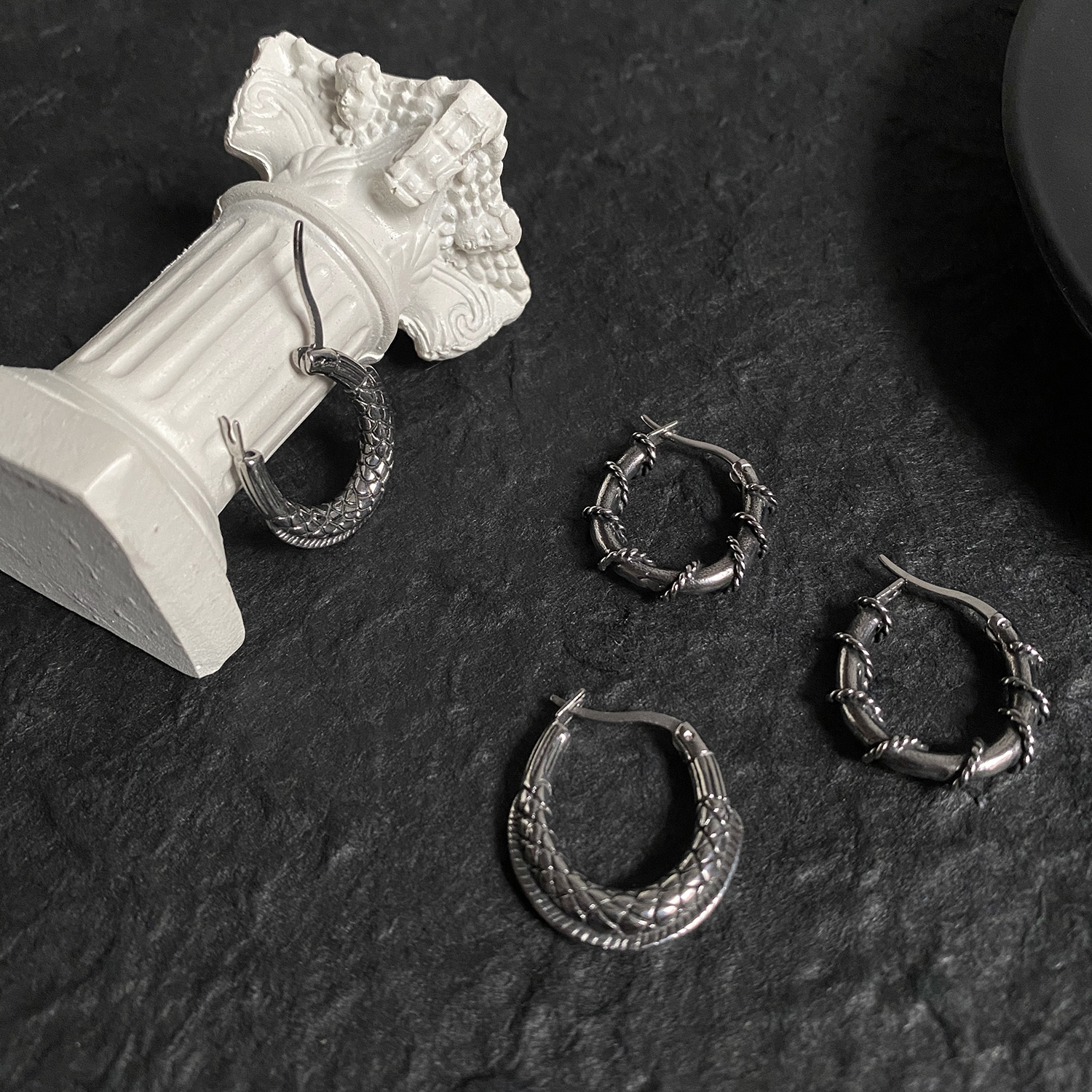 Carmen dark department trend thorns winding circle earrings hip-hop personality titanium steel ear needle ear jewelry for men and women