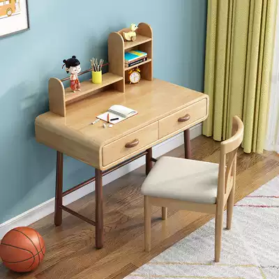 Full solid wood desk bookshelf combination simple children's computer desktop table home primary and secondary school students study desk desk