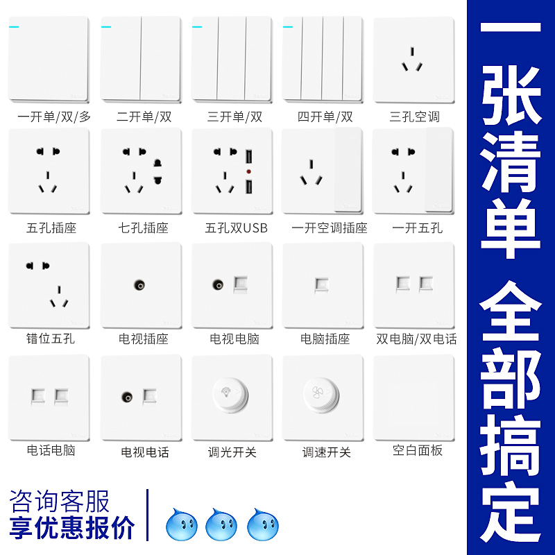 Home 86 Type Concealed Switch Socket Panel Wall Mesh Road Network Route Optical Fiber Information Network Interface Network Plug-in Computer Socket