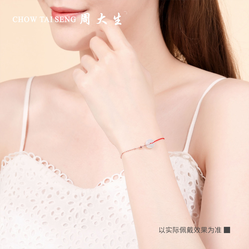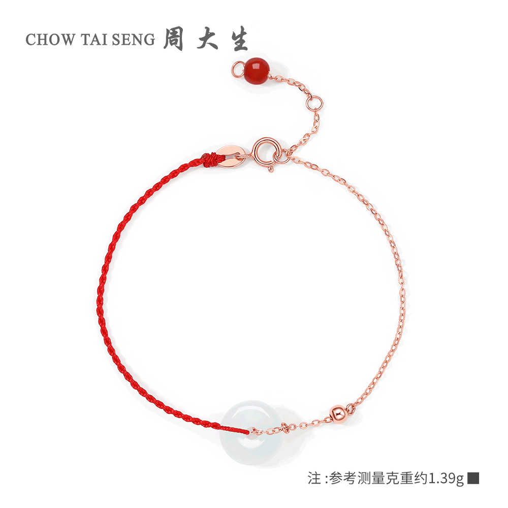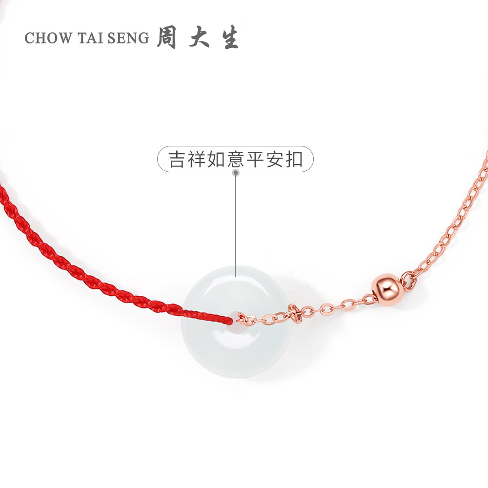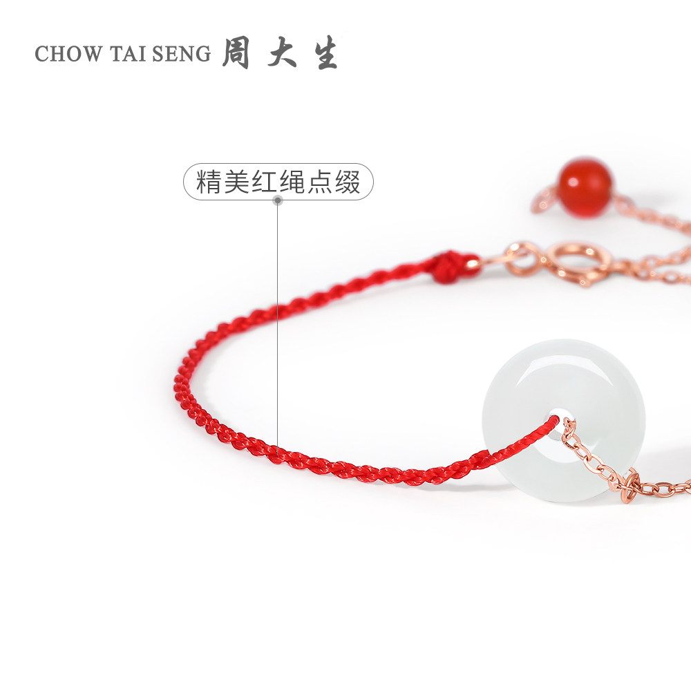 Chow Tai Sang and Tian Yu bracelet peace buckle Honmei Year Red Rope 18K rose gold inlaid jade hand ornament Valentine's Day gift