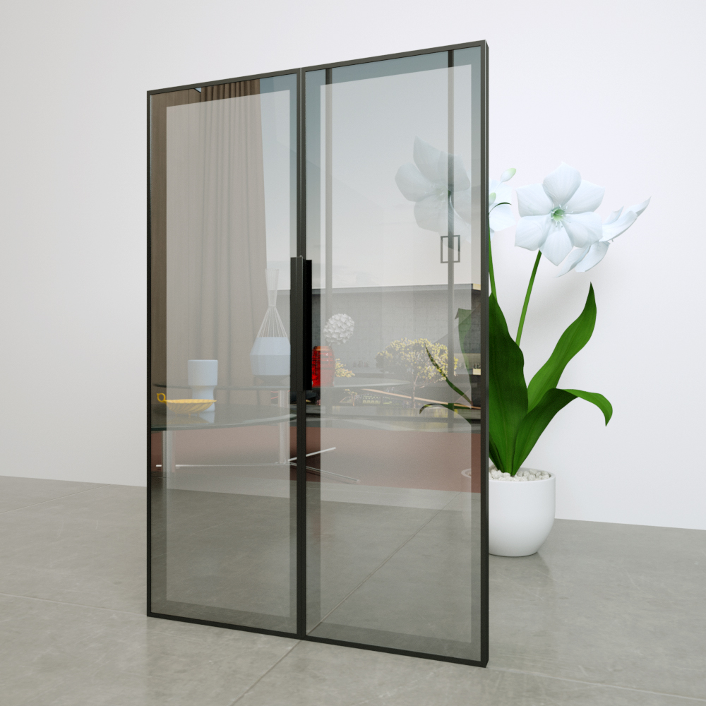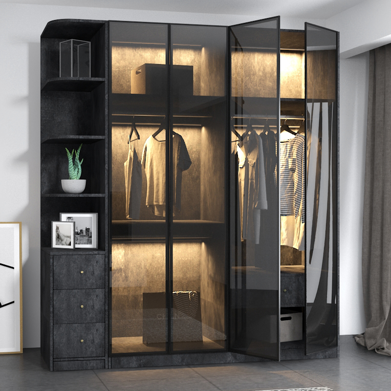 Minimalist light luxury narrow side aluminum alloy tempered glass wardrobe sliding door custom transparent tea color wine cabinet door to door