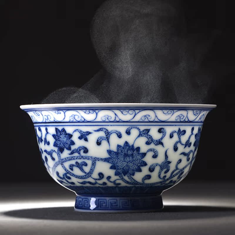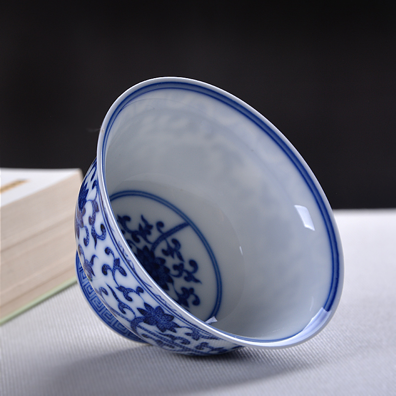 Imitation antique green flower master's cup single cup Jingdezhen pure handmade retro green flower porcelain hand painted stalking lotus wood burning tea cup