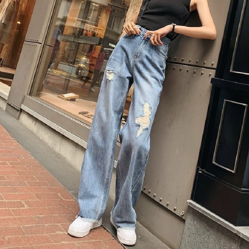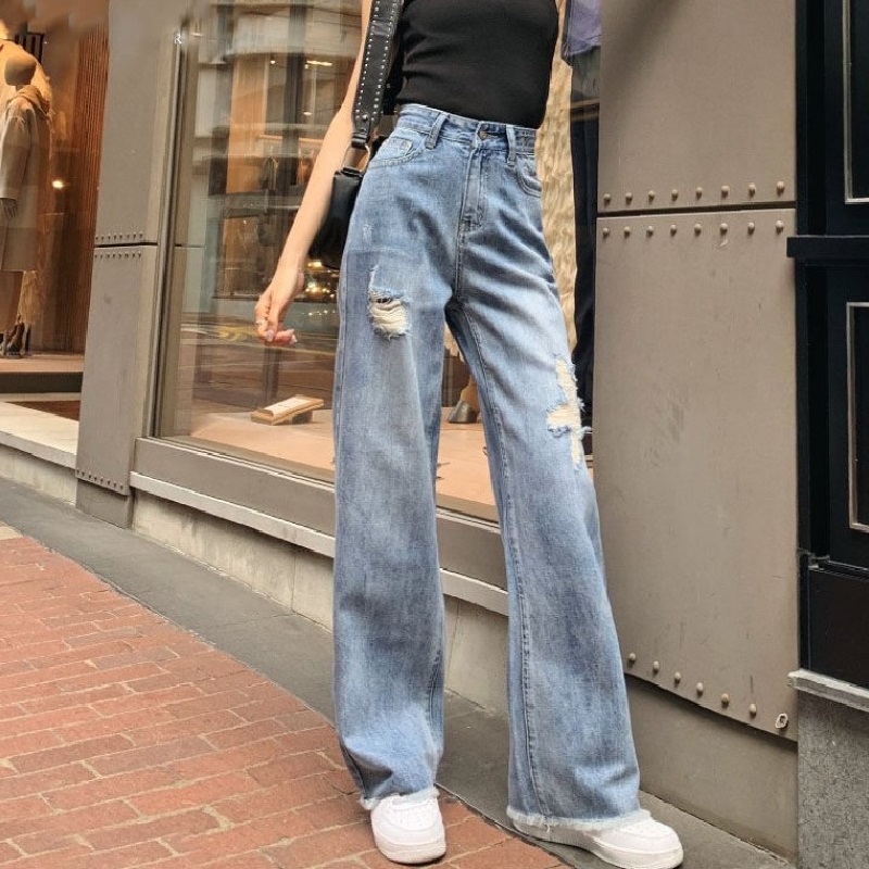 mularsa jeans woman 2022 Summer new high waist pituitary loose and thin with a broken hole and a wide leg pants