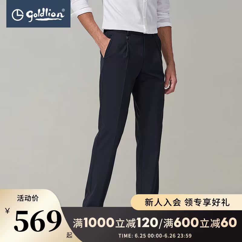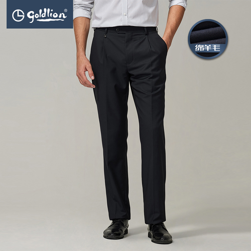 Goldlion Spring/Fall Men's Fashion Dark-Twill Business Single Pleated Dress Pants with Wool (Wai)