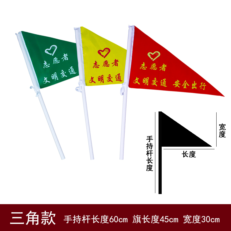 Red volunteer triangle 30*45cm with hand-held rod 60cm