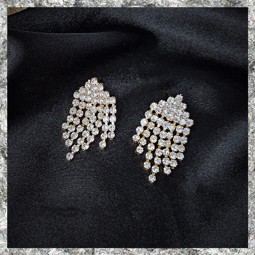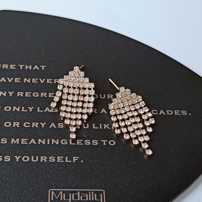 Fashionable exquisite full diamond tassel earrings female net red trend cold wind simple temperament earrings celebrities all-match silver earrings