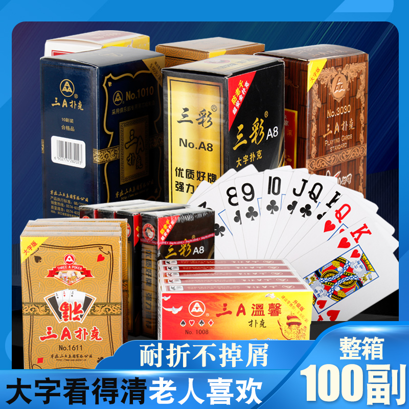 The whole box of 100 pairs of three A1611 large character playing cards Three A three color in the elderly and the elderly extra large super large character solitaire