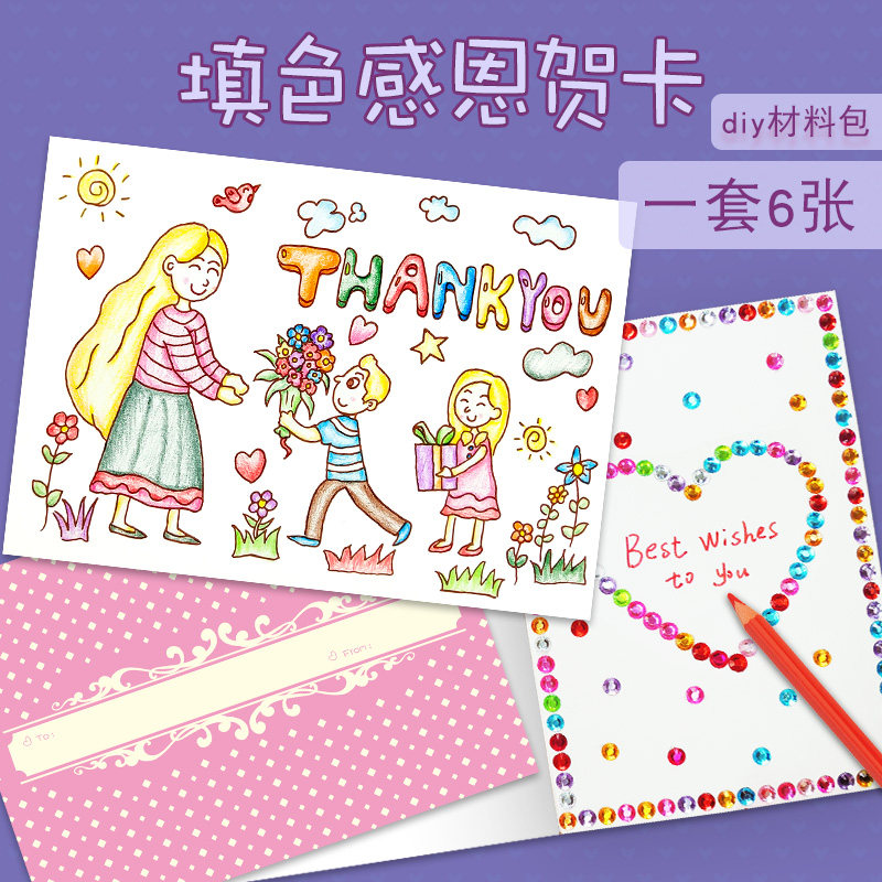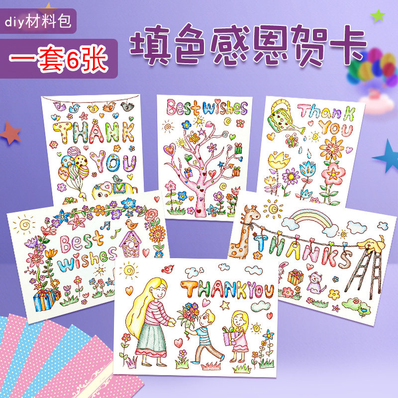 6-in-1 full set of thanksgiving coloring greeting cards with 6 cards and 6 envelopes 6-in-1 Thanksgiving handmade DIY greeting cards with 6 cards and 6 envelopes New large teacher wishes you handmade DIY greeting cards with new large teacher