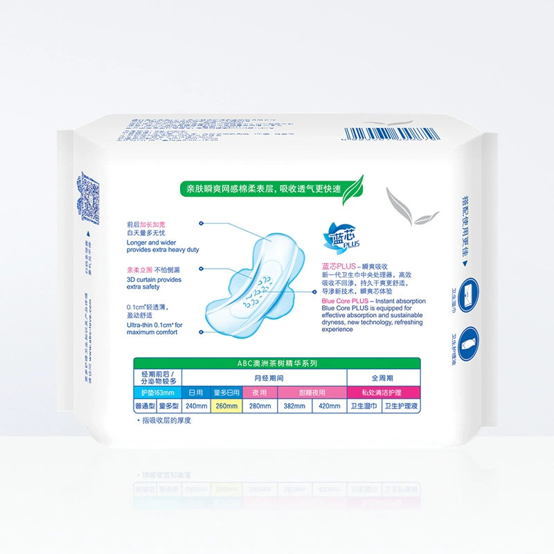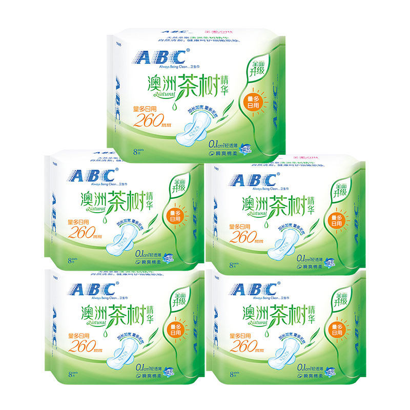 ABC sanitary cotton 5 packs 40 pieces Australian tea tree essence Daily 260mm lengthened combined dress ultra-thin aunt Towel Woman