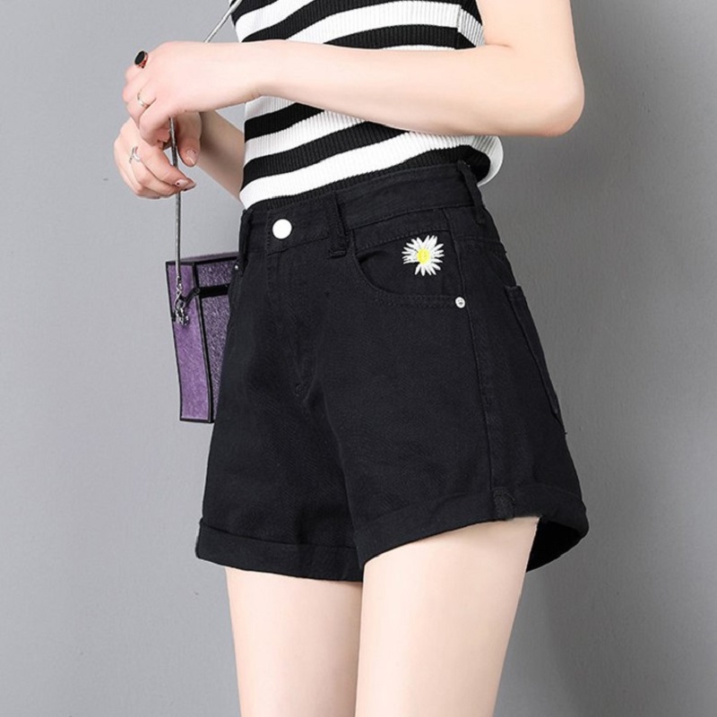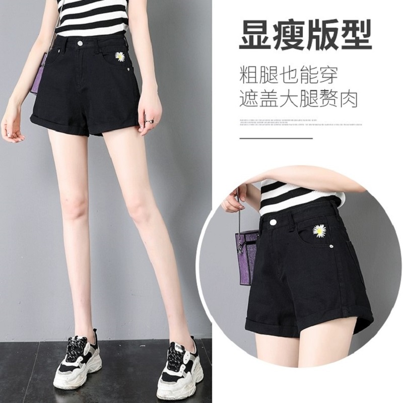 mularsa denim shorts women's summer 2021 new small daisy thin high-waisted thin embroidered a-word wide-leg hot pants