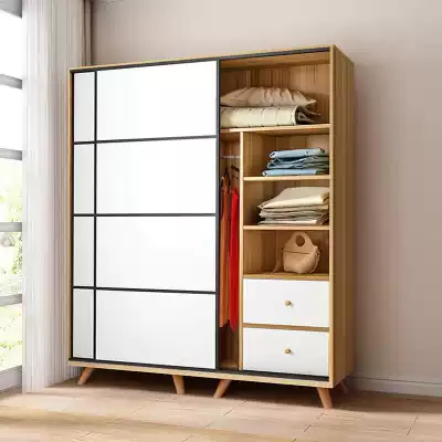 Wardrobe modern simple home bedroom Nordic simple rental room with sliding door storage cabinet solid wood storage wardrobe