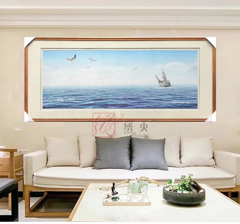 Pure hand-embroidered Suzhou embroidery finished hanging paintings large living room sea sailing seagulls European-style gifts for foreigners to go abroad