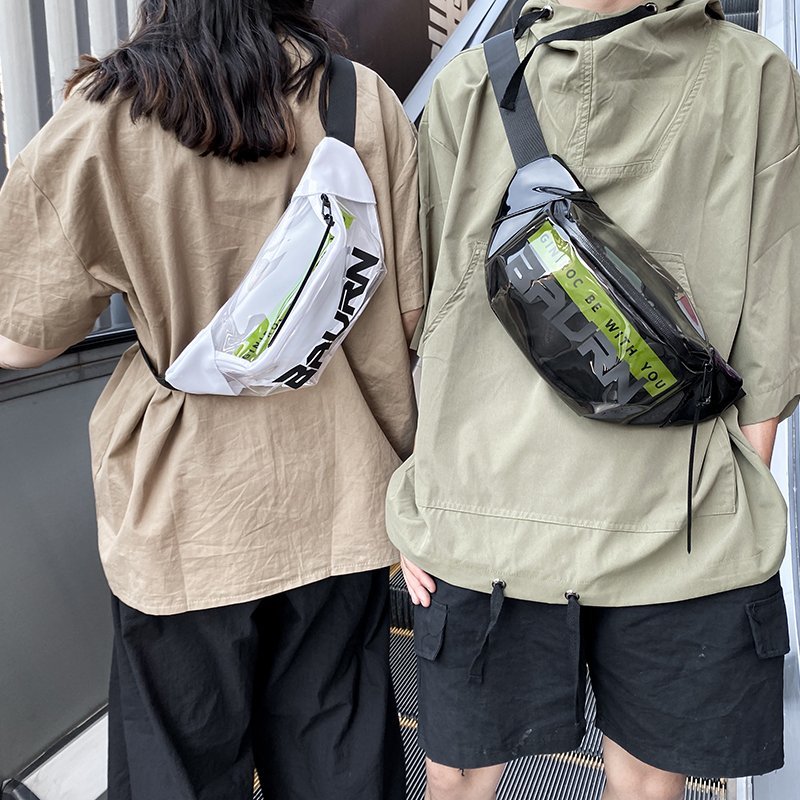 Slanted Satchel Men Ins Tide Pack Transparent Chest Bag Women Sports Wind Tooling Bag Tide Card Street Function Single Shoulder pocket
