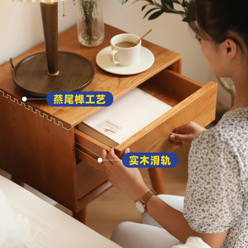 Cloud cherry wood bedside table Nordic modern minimalist ins solid wood Japanese-style storage bedside small cabinet storage cabinet