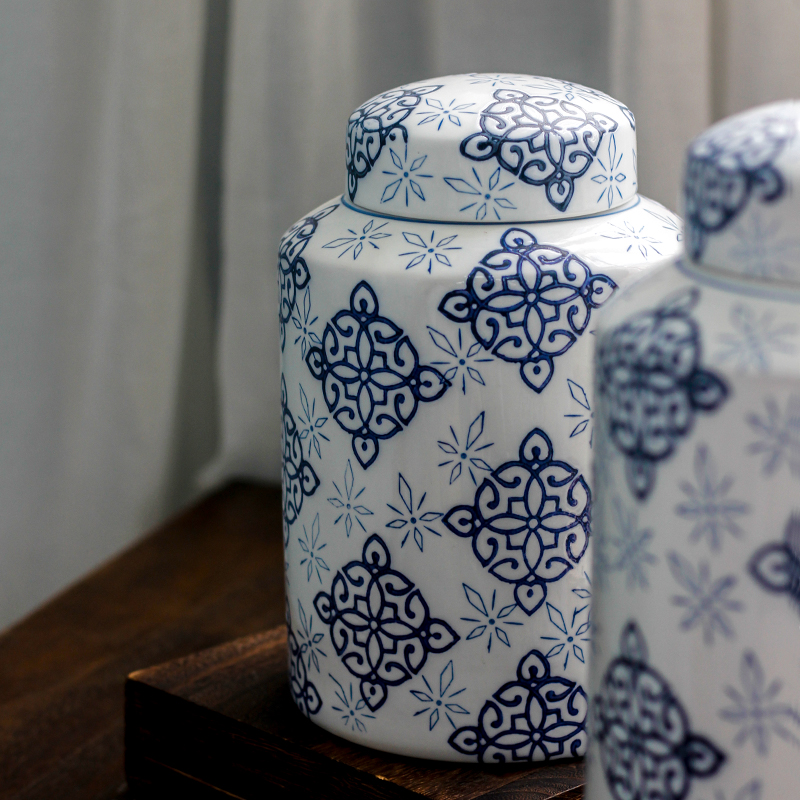 Ceramic of new Chinese style stores content pot to take cover hand-painted blue and white porcelain places handicraft of sitting room porch receives adornment pot