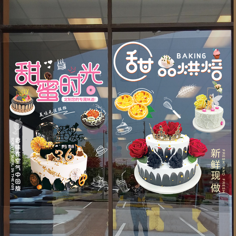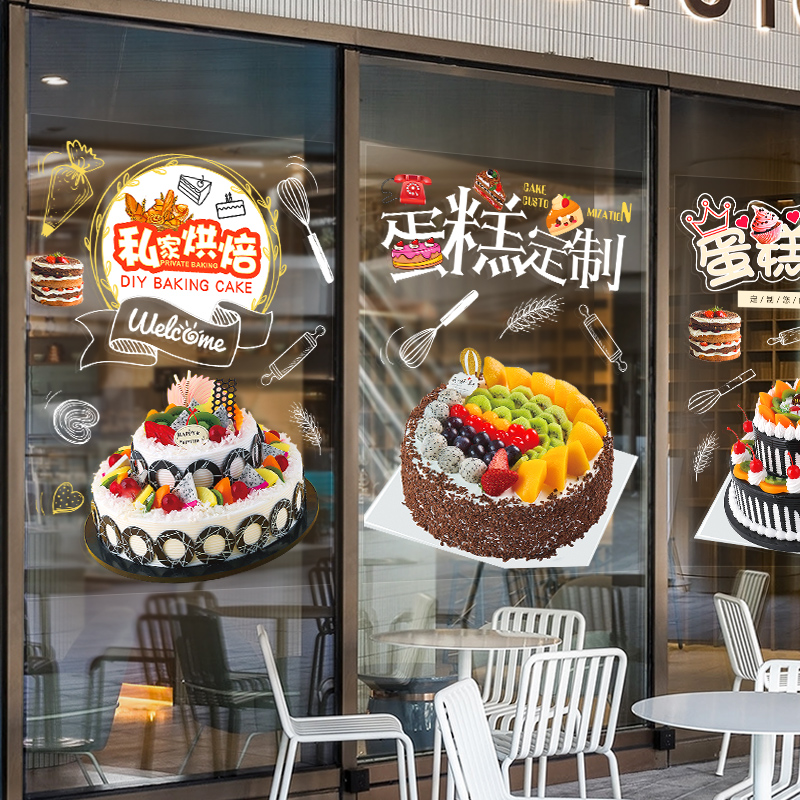 Birthday Cake Glass Sticker Baking Wall Decoration Graduation Flower Creative Sticker Custom Cake Window Poster