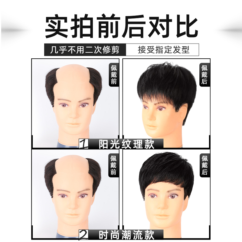 Wig Man Short Hair Handsome Korean version overhead Hair Tonic Sheet Male Wig Sheet Bald Forehead Male Real Hair Tonic without marks