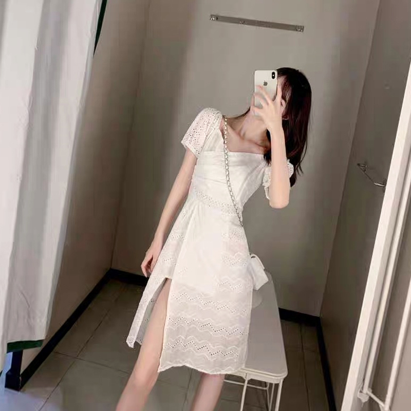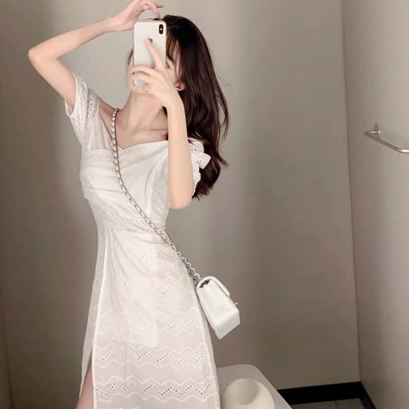 Small sub-dress Women 2022 Summer new ultra-fairy-style Temperament Cashew Slim White Lace Dress