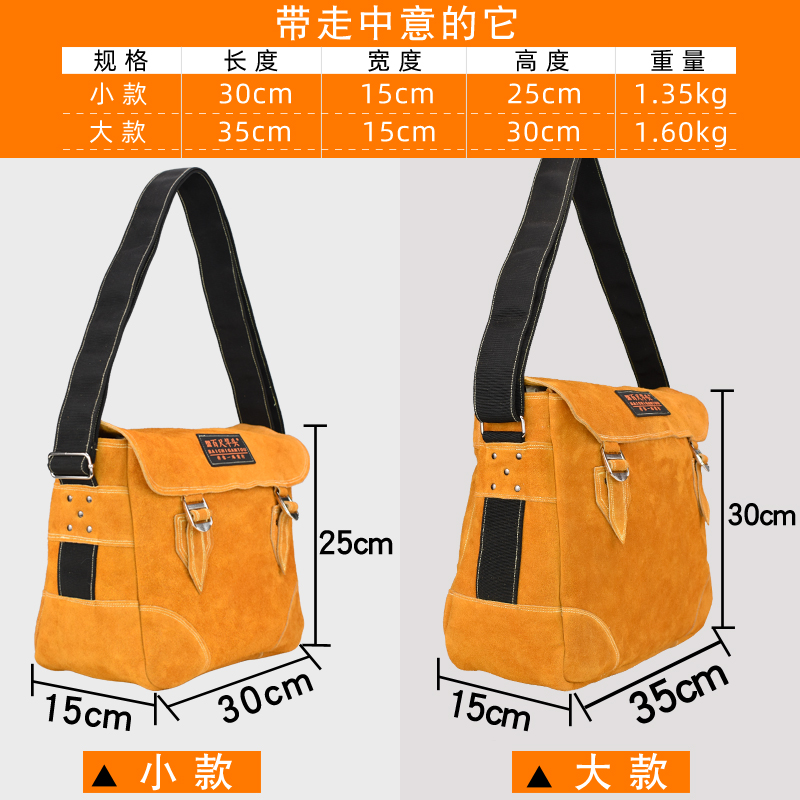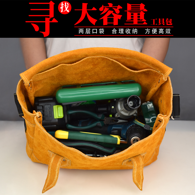 Electrician kit men's work with cow leather carpentry multifunction genuine leather wear and repair kit with single shoulder diagonal satchel
