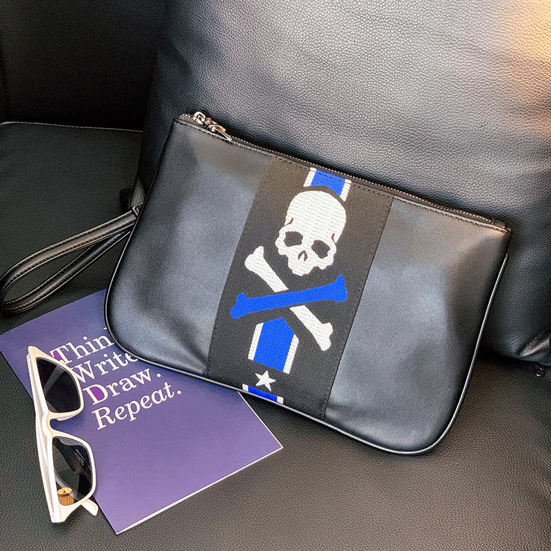 Men's handbag 2022 new fashion personality clips for men's hands with bag Ghost Head Tide Envelopes Bag Tide Casual Catch