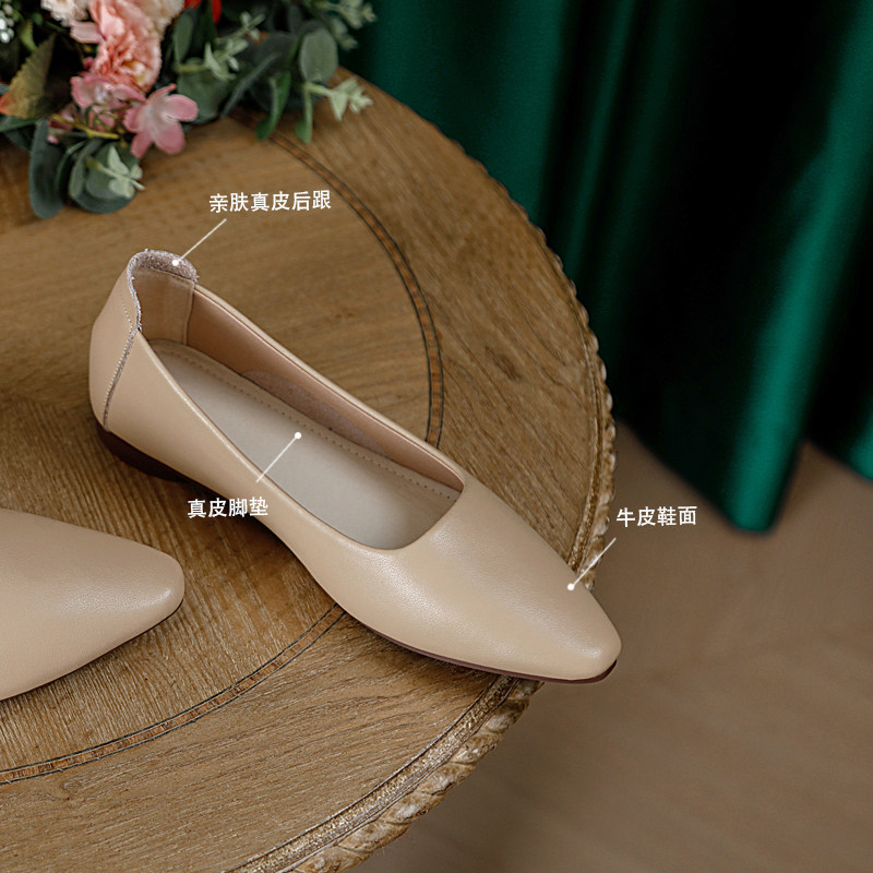 Real Leather Grandma Shoes Woman Flat Bottom Single Shoes Custard Pregnant Woman Summer 2022 New Shoes Bean-Bean Shoes Soft Leather Women Shoes