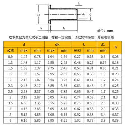 Brass corns buckle hollow copper parts via hole Single tube rivet M0 9 M1 3 M1 4M1 5M1 7M2 0M3