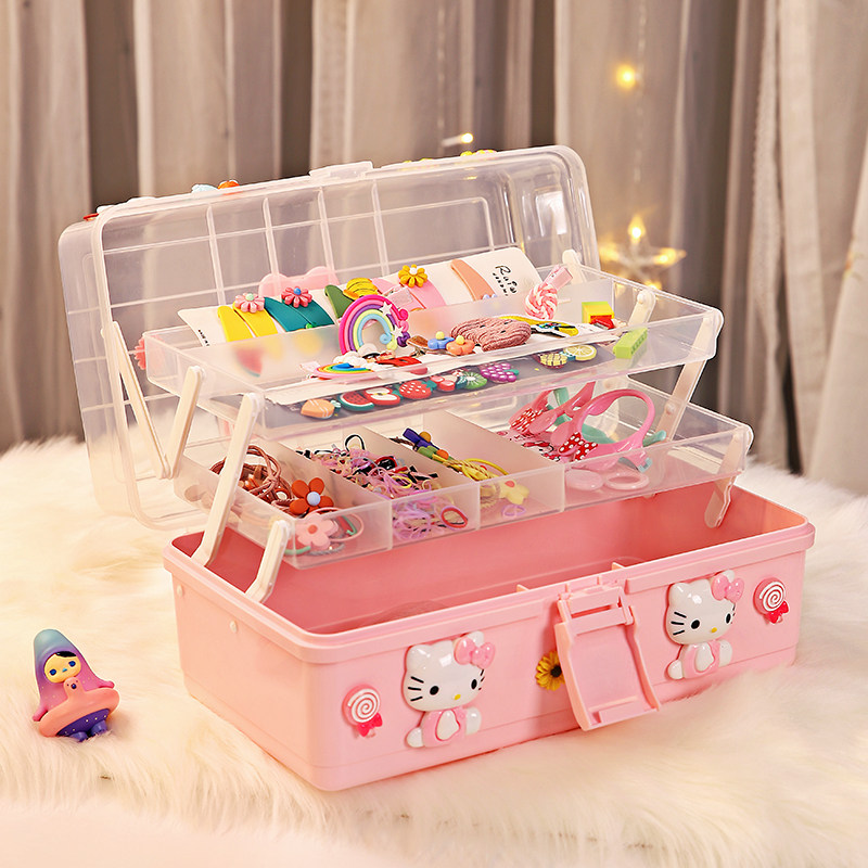 Parent-child Interactive (KT Material Package) Small Number 2 Hair Decoration Containing Box (without KT Material Package) Super Large Number 3 Layer Hair Accessories Box (without KT Material Package) super-large number 3 layers of hair decoration box (