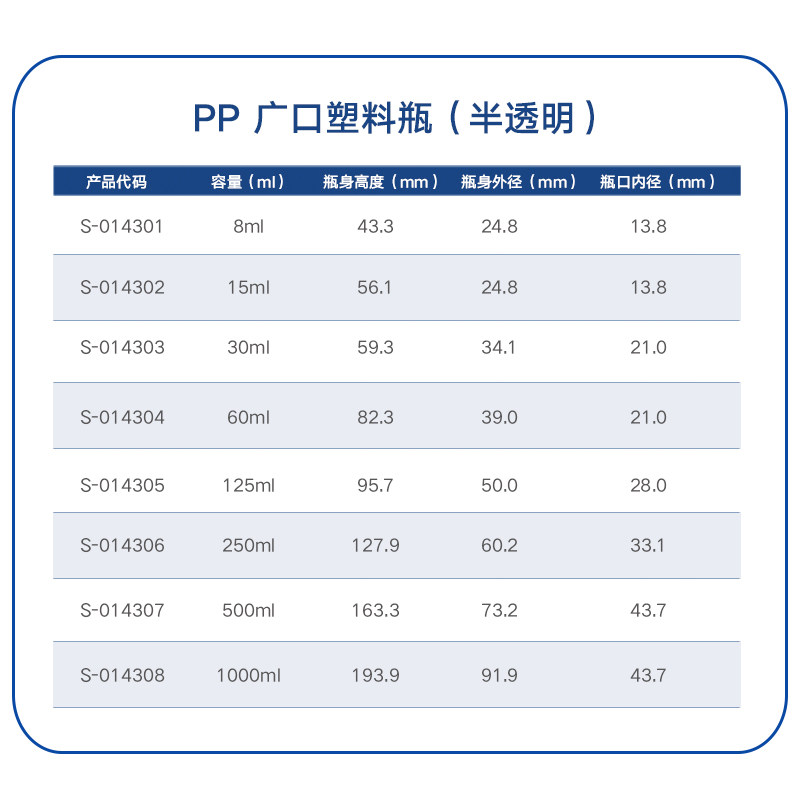 PP plastic plastic bottle PP large mouth bottle high temperature and high pressure bottle semi-transparent laboratory reagent bottle bottle