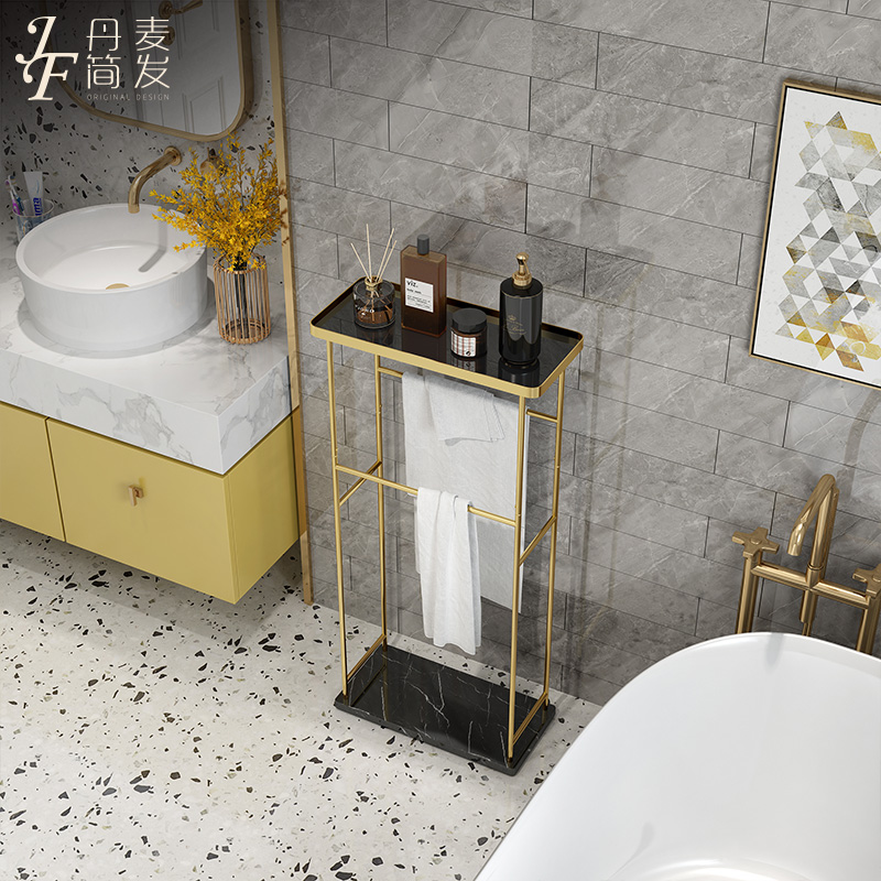 Denmark JIANFA light luxury free hole bathroom floor towel rack Nordic powder room bath towel rack storage rack double rod