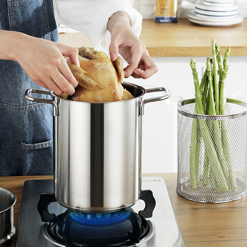 304 stainless steel asparagus pan plus high small broth frying pan Home small provincial oil saucepan soup pan cooking Italian pasta corn pan