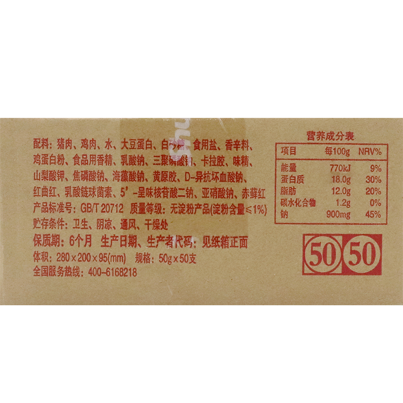 Double Link King Middle Wang No starch Ham Sausage 50g * 30 Whole Boxes Sausage Casual Soak in Leg Sausage