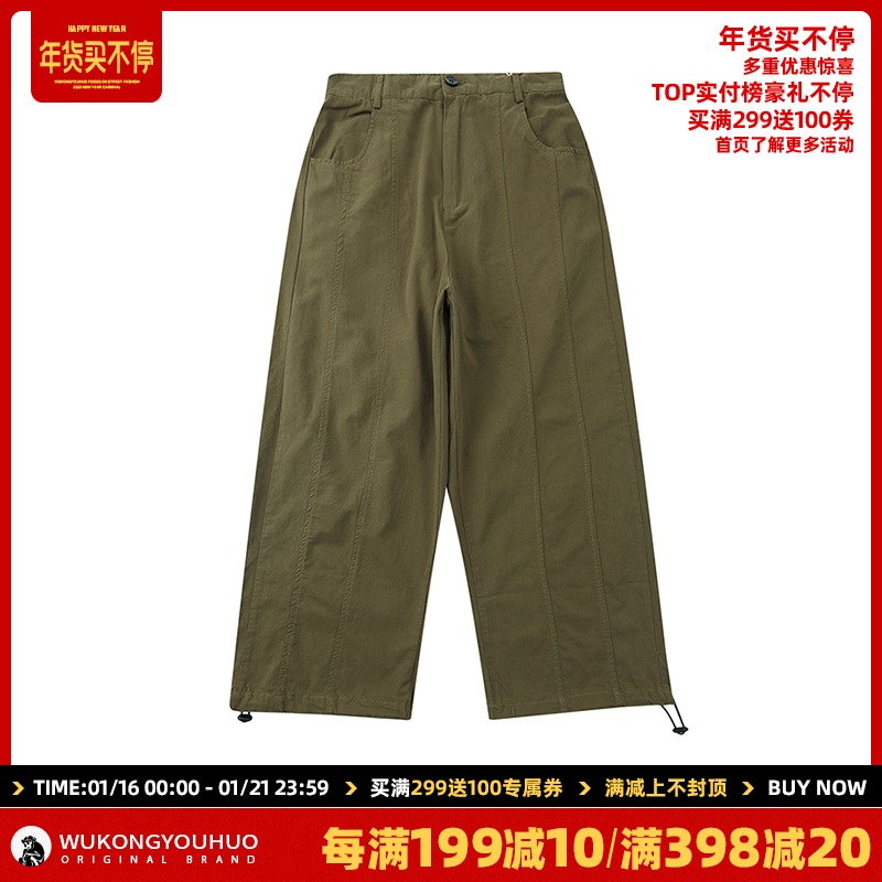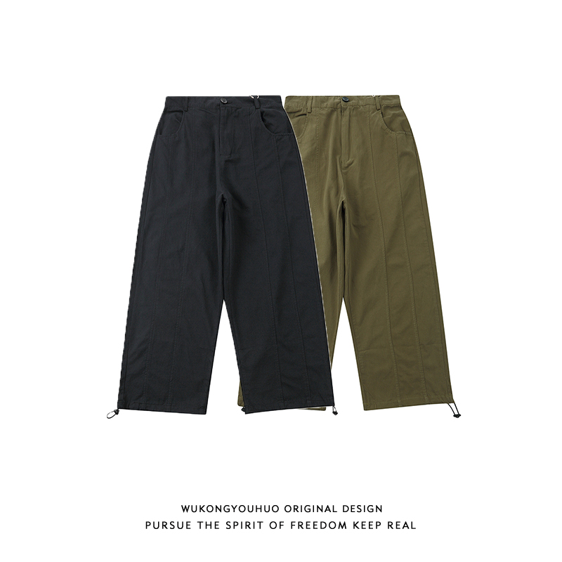 Wukong has goods, Japanese retro loose wide leg overalls men's Tide brand street draw rope foot straight casual pants